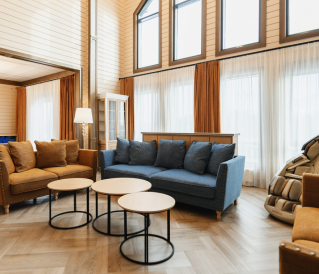 Одна большая кровать, Детская кровать, Душ, Джакузи, Кондиционер, Телевизор, Холодильник, Мини-бар, Сейф, Беспроводной доступ в интернет, Фен, Кофеварка или чайник, Возможность доп места, Принадлежности для ухода/душа, Косметические принадлежности, Набор чайной посуды, Набор кухонной посуды, Кухонная техника, Гардероб, Номер с кухней, Телефон