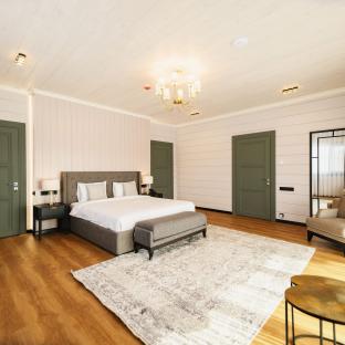 Площадь 196 квадратных метров, две комнаты, двуспальная кровать KING SIZE 180х200.