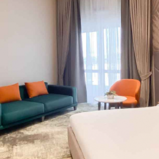 Cовременный номер площадью 35,5 кв. м с одной большой двуспальной кроватью (King), удобным креслом для чтения, минибаром, душевой кабиной с тропическим душем, отдельной ванной и бесплатным Wi-Fi. Оснащение номера: