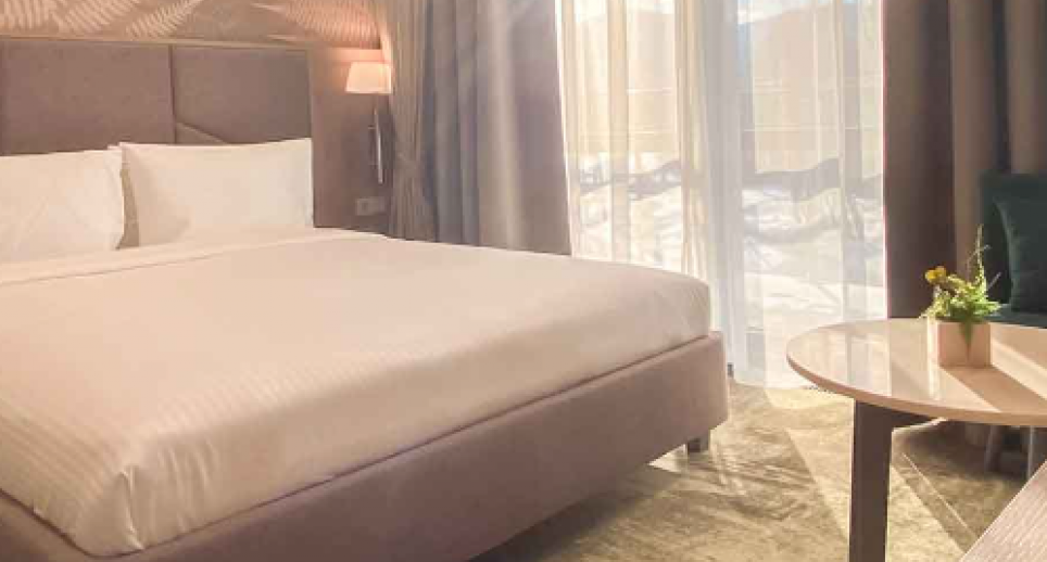 Площадь 26 квадратных метров, двуспальная кровать KING SIZE 180х200.