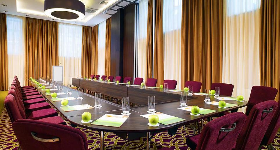 Способная вместить до 18-ти человек, переговорная комната оснащена всем необходимым техническим оборудованием.