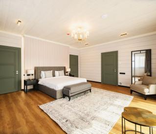 Площадь 196 квадратных метров, две комнаты, двуспальная кровать KING SIZE 180х200.