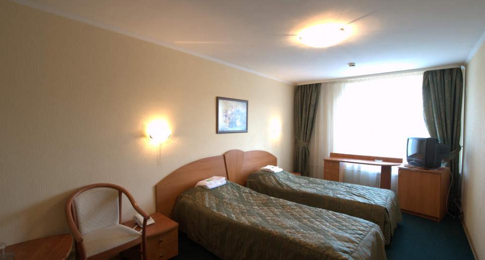 Оснащение номера: Wi-Fi, электронный ключ, две односпальные кровати с прикроватными тумбами, шкаф для одежды, багажница, письменный стол, стулья, телефон, телевизор, холодильник, комплект полотенец, раздельный санузел на два номера.