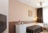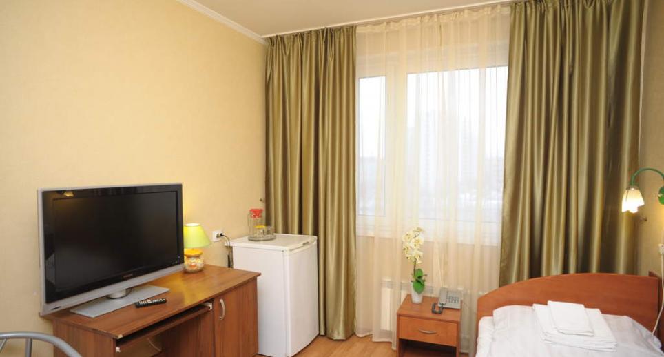 Комната находится в блоке квартирного типа. Отдельный блок состоит из двух-трёх комнат, объединенных общим коридором, кухней и санузлом. В комнате односпальная кровать, холодильник, телевизор с плоским экраном, чайник, комплект полотенец. В каждой комнате электронный замок. Площадь: 11 м2